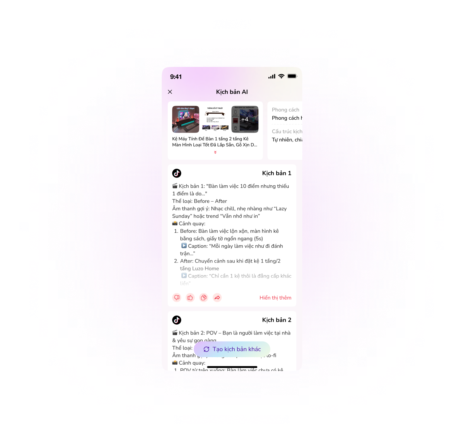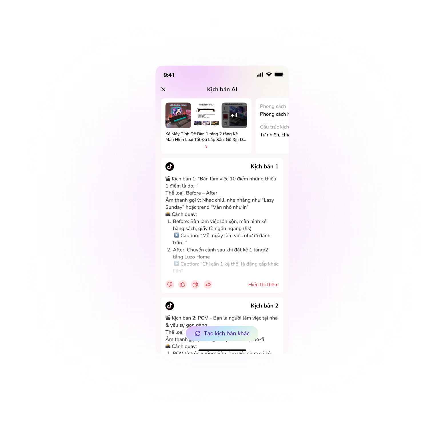 Feed the product in → Get ready-to-shoot video scripts