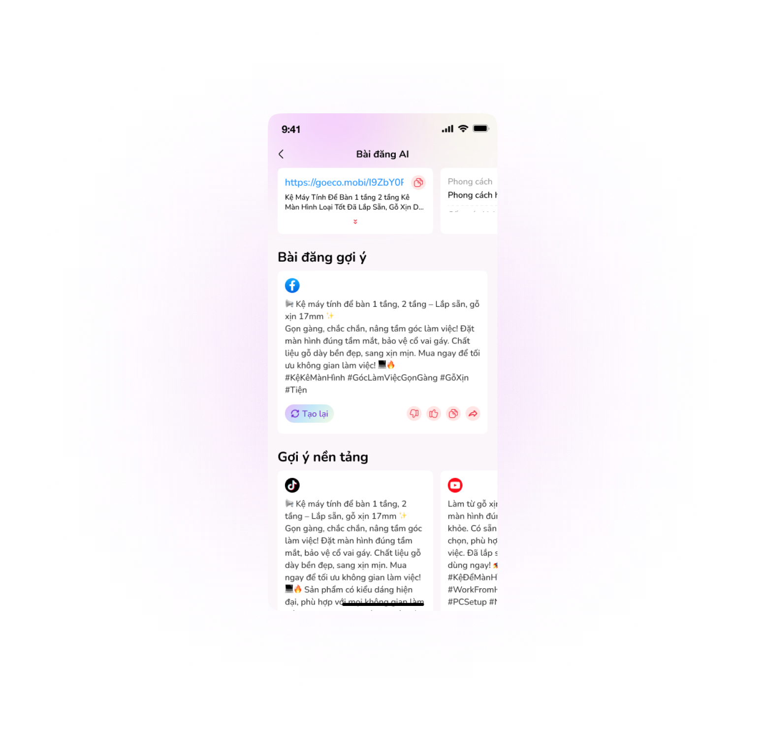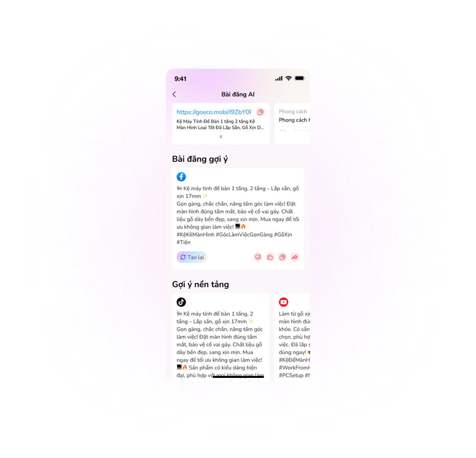 Just paste your affiliate link → Click → Boom, your caption is ready.